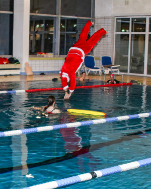 Nach einem feierlichen Empfang richtete der Nikolaus ein paar Worte an die Kinder und Jugendlichen. Er wußte überraschenderweise sehr viel über die jungen Sportlerinnen und Sportler zu sagen. Das sorgte hier und da für Verwunderung. Abschließend gab es für jedes junge Mitglied auch noch eine kleine Aufmerksamkeit.