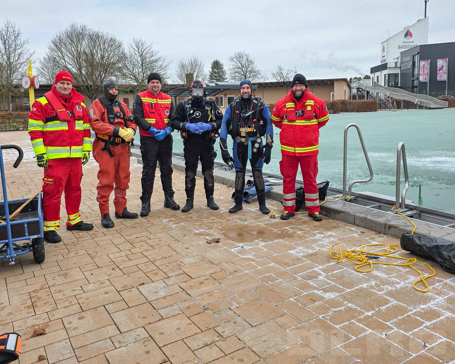 Unser Dank gilt Heike Seimetz vom Freibad Andernach und der Stadt Andernach, die unseren Einsatztauchern diesen Tauchgang und die damit verbundenen wertvollen Erfahrungen ermöglicht haben.