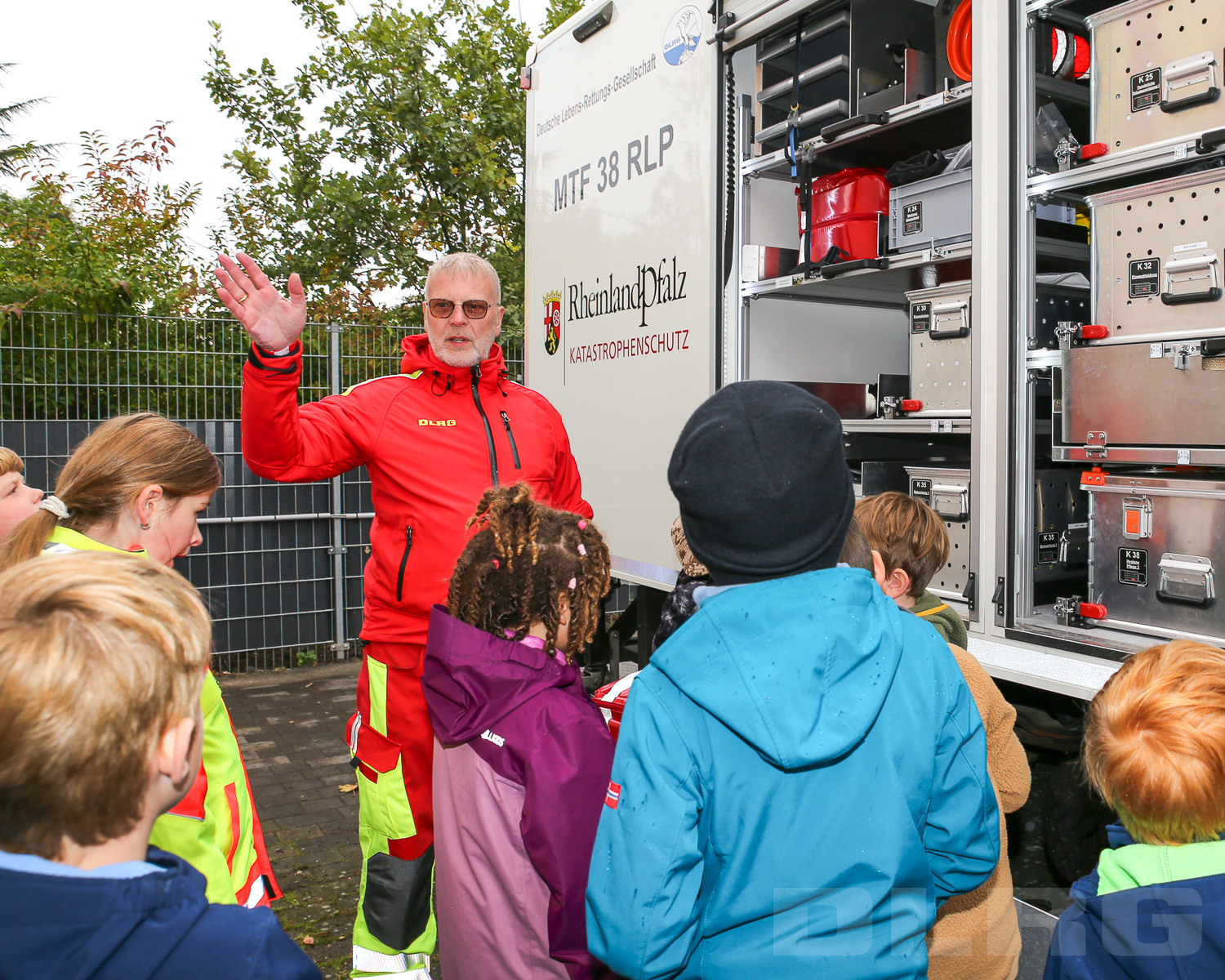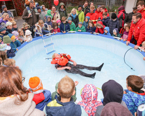 Nach Begrüßung der Kinder und Eltern gab unser Vorsitzender Erik Müller einen kurzen Überblick über die Aufgaben und Einsatzgebiete der DLRG Ortsgruppe. Im Anschluss ging es für die Besucherinnen und Besucher in kleinen Gruppen zu den einzelnen Fachbereichen der Wasserrettung: Tauchen, Strömungsrettung, Boote und Fahrzeuge, Realistische Unfall- und Notfalldarstellung (RUND) und Gerätewagen Sanität (GW-SAN).