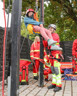 An den einzelnen Stationen gaben die Einsatzkräfte Auskunft über ihre ehrenamtliche Tätigkeit und standen den Kindern und Erwachsenen Rede und Antwort. Einsatzgeräte und Ausrüstung konnten ganz genau unter die Lupe genommen und teilweise auch angewendet werden. Die Jugend der DLRG Andernach versorgte die Gäste mit frisch gebackenen Waffeln.